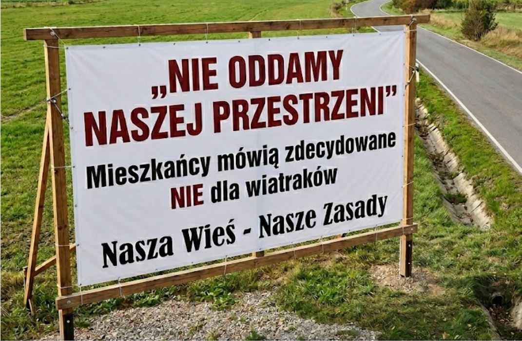 Dokument z 23 marca 2026 roku wskazuje wprost – lokalna społeczność sprzeciwia się sytuowaniu turbin w bezpośrednim sąsiedztwie domów i terenów zamieszkałych .